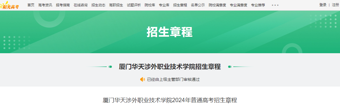 ®从阳光高考了解到,2024年福建厦门华天涉外职业技术学院普通高考招生章程已公布,请准备报考本校的考生认真阅读招生章程,祝愿所有考生考入自己理想的大学,选择适合自己的专业。