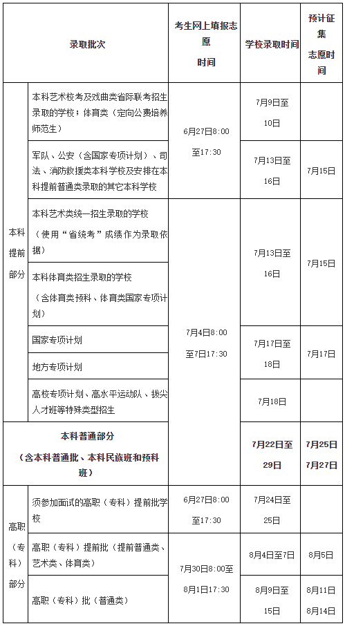 从海南省考试局发布的《2024年海南省普通高校招生实施办法》得知,2024年海南省海口高考录取时间:7月9日-8月15日,具体详情如下: